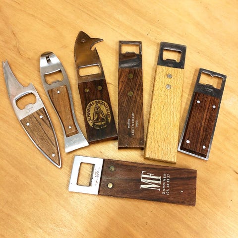 4 forskellige sæt salatbestik af den lækre slags fra 70’erne med lange skafter i træ - jeg tror, det her er teak eller palisander. Hovederne i rustfrit stål. Alle fremstillet i Danmark. Længder cirka 27 - 29,5 cm. Almindelig brugsslittage.