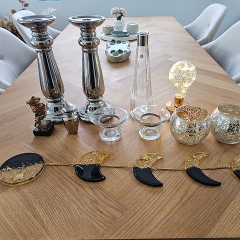 Lysestage med sølv striber 24cm nypris 299,95kr