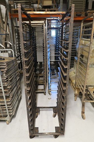Hele brødet skæres i én arbejdsgang i lige tykke skiver.