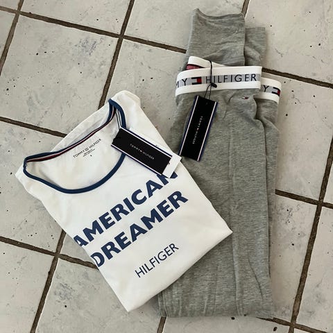 Nattøj, Natbukser , Tommy Hilfiger, str. M, Lys blå/hvid stribet, 100% bomuld , Ubrugt, Loungebuks/natbuks, aldrig brugt: Modern stripe pant, model ithica str. M fra Tommy Hilfiger. Længde fra talje til skridt 27 cm (hoftelængde), benlængde fra skridt 71 cm. Taljebredde 78-102 cm. (Elastik og bindebånd). Butikspris 450 kr. Ikke-ryger hjem. Sender gerne.