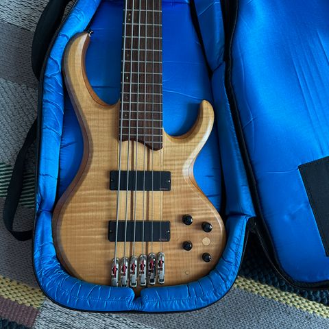 Lækker, alsidig og velspillende 5-strenget Carvin LB-75 fra USA. Udgaven med de låsbare Sperzel stemmeskruer. Den har lidt brugsspor i lakken, men fungerer 100 % som den skal, og lyder super fedt. Der er isat en Glockenklang preamp for at kunne skifte mellem aktiv og passiv. Den originale preamp medfølger.