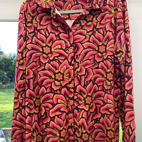 Sparsomt brugt Du Milde bluse i grøn med blomster. Det er størrelse 3XL. Mål fra ærmegab til ærmegab er 55 cm. Der er stræk i stoffet. Længden er 65 cm