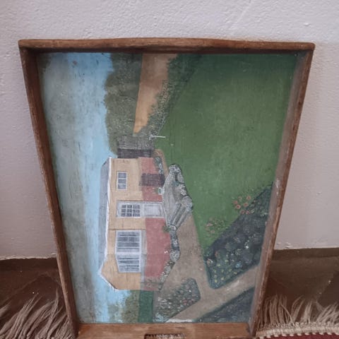 To gamle serveringsfade i træ. Håndmalet begge to. Virkelig fine!!