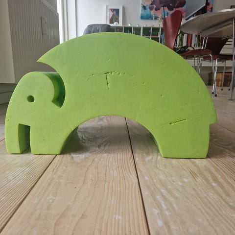 Stor grøn Bobles-elefant i flot stand: 31 cm høj, 55 cm lang, 21 cm bred. Grundigt rengjort med parfumefri neutral-sæbe. Nypris: 1.300 kr.
