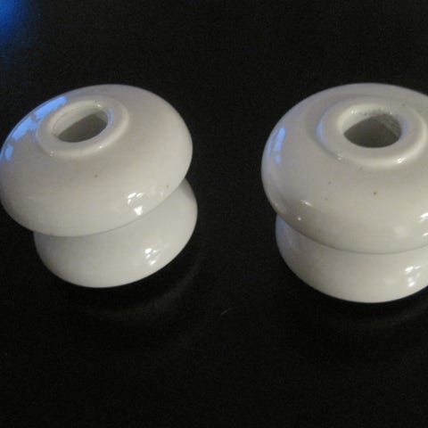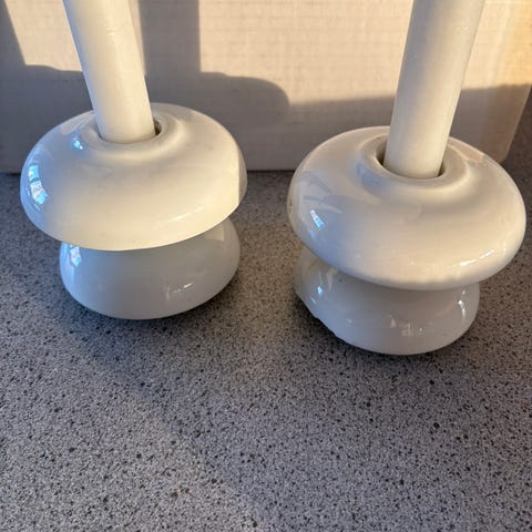 Lækker chokoladebrun glasur. Kan anvendes som lysestage (to muligheder). Højde 6,5 cm. I fin stand. Tidligere brugt til at isolere strømførende kabler.