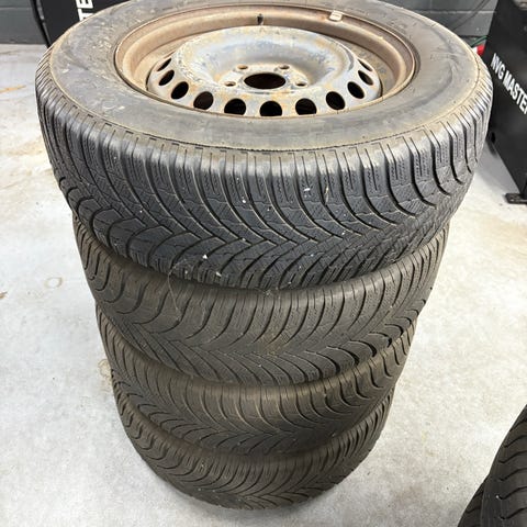 Stålfælge, 16", andet mærke, 215 / 65 / R16, vinterdæk, Bridgestone, 5 mønster, fælge med dæk, Stålfælge med Nissan hjulkapsler