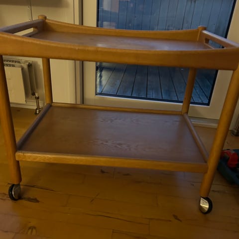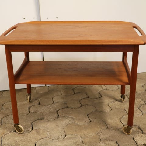 Hans J. Wegner, serveringsbord/ bakkebord/ rullebord i model AT 45, og i en meget smuk teak træ , flot forspændte sider , stemplet i bunden. designet af Hans J. Wegner.