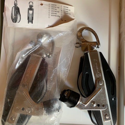 2 stk Easy serie 2 Violinblokke med Easy servo cleat 44, Wichard skødekrog og svirvel. 12 mm reb. Nypris 3.050 kr (1.525 kr/stk). Helt nye og ubrugte. Køb til næsten 1/3 af prisen. Sælges kun samlet. 2 sæt a 2 stk violinblokke haves.