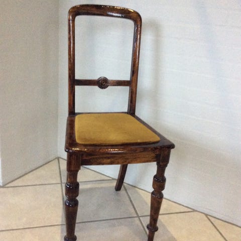 Antik spisebordsstol med stribet stof og metalknapper sælges. Stolen fejler ikke noget.