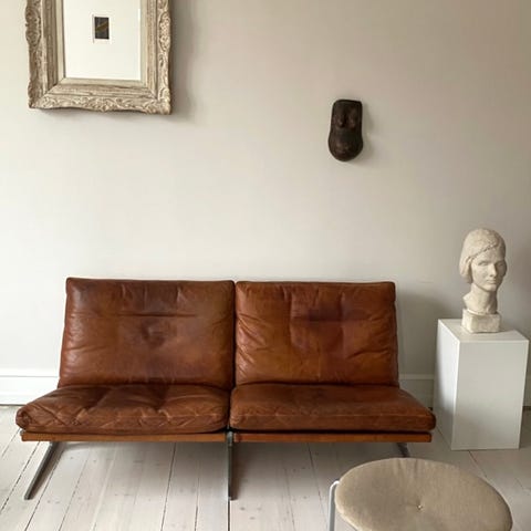Der er enkelte mærker på puderne, hvilket ikke kan undgås med denne type læder. Men ellers står super flot.