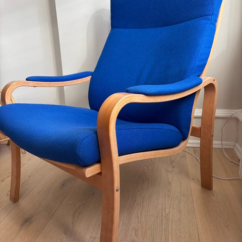 Blå lænestol 60x60x85 cm. 50,-kr.