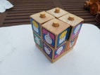 Hver klods er ca 4x4 cm og der er 8 klodser siddende på træ stænger.