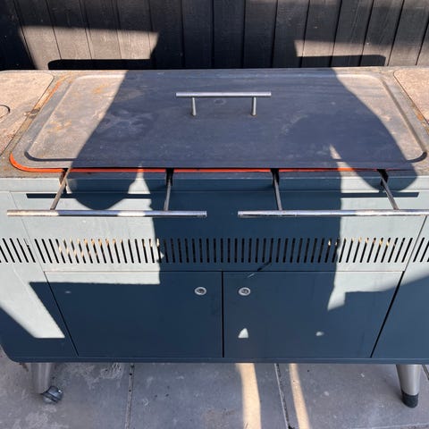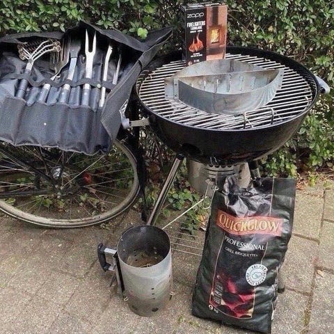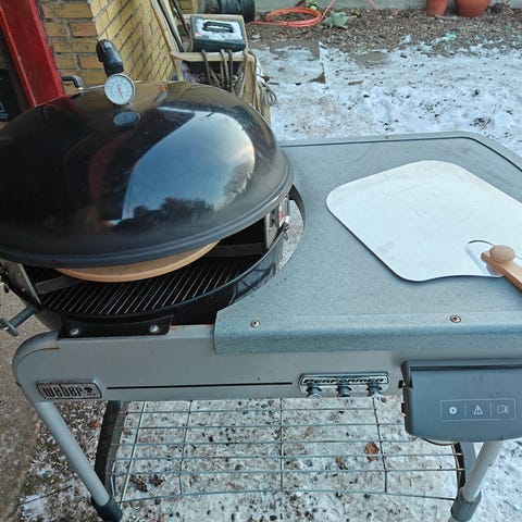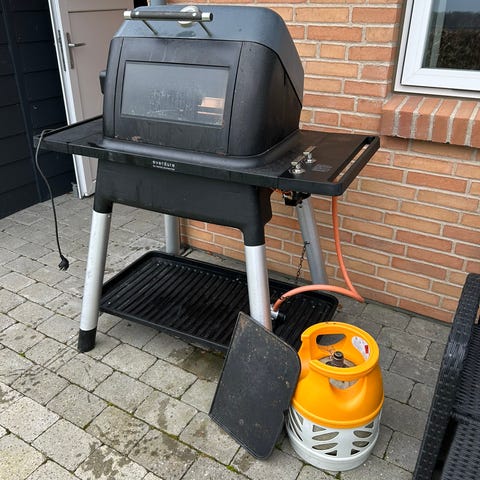 der medfølger rotisseri, der opbevares smart i siden af grillen. stor grillflade. eltænding af kul, så den er hurtig klar til grill