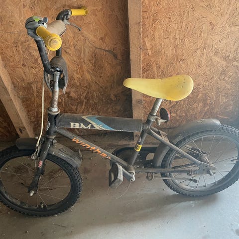 Super fed Star Wars børne BMX med Star Wars hjelm og håndtag med motorlyd. Meget fin stand.
