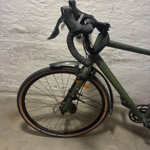 Cyklens stel er udformet i aluminium og har en aggressiv køreposition, som gør at du ligger en smule mere foroverbøjet henover styret, end du gør på f.eks. en klassisk cykel. Har fået sat justering på styret, så det kan justeres efter hvor meget man vil være foroverbøjet.