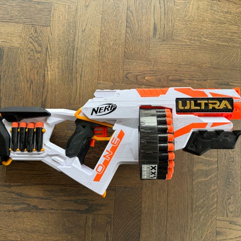 Nerf ultra "dorado" semi automatisk. Batterier medfølger ikke.