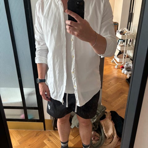 Herreskjorte fra YMC i størrelse L, 100% bomuld. Som ny, fremstår i rigtig flot stand. Perfekt til både afslappet og pæn påklædning. Pæn og velholdt.