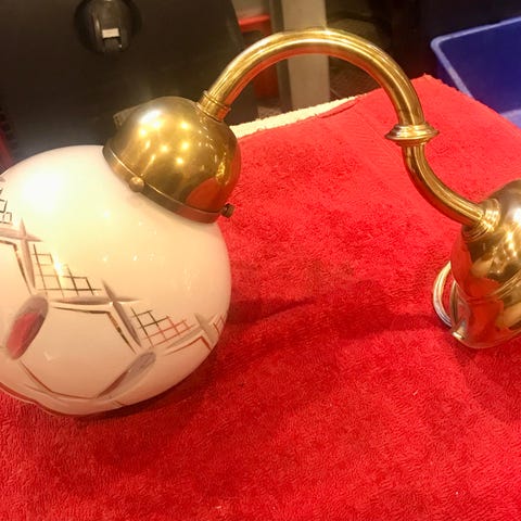 Lampen kan blive rigtig flot igen, hvis den bliver pudset. Sæt evt. en farvet stofledning i.