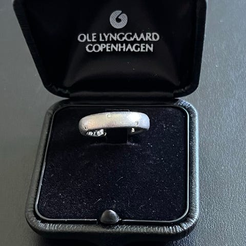 Boble ring fra Ole Lynggaard 18 kt hvidguld med turmaliner og ametyst. Str 53-55, men svær at måle pga den ujævne facon.