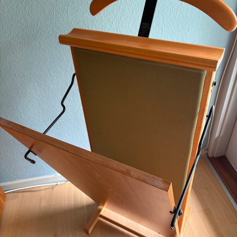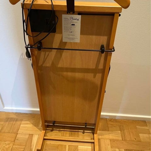 Rigtig fin bukse presser i træ stående på fod. Så er dine presfolder altid i orden. er helt ok