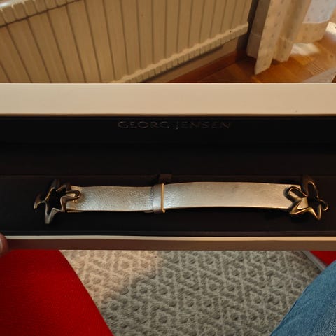 Armbånd, Georg Jensen, Georg Jensen splash armbånd med hvid læder 1,5 cm x24 cm. Sterling sølvlås nr. 429 B af Henning Koppel.