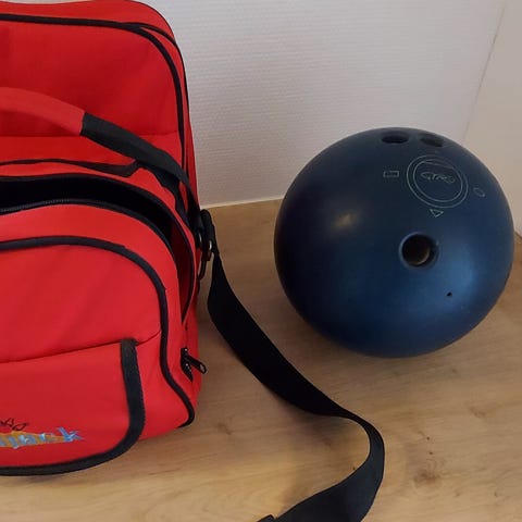 Rigtig fin bowlingkugle til højre hånd med taske sælges.
