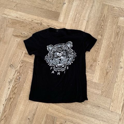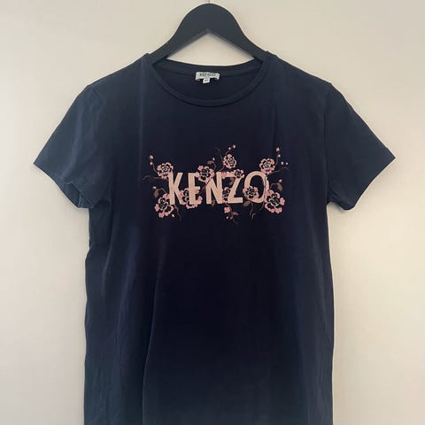 Kenzo tshirt langærmet med logo foran. Str 16 år, 176. Blå. Lidt lille i størrelsen. Svarer nok til 11-12 år. Har eb lille syning bag på på højre ærme. Jeg sender desværre ikke
