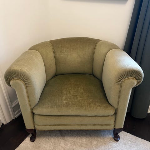 Fin lille lænestol, siddehøjde 41cm, spansk design, fylder ikke meget og er i flot stand.