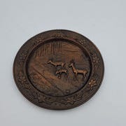 Vintage KUHN ZINN tysk tin vægplakette med håndmalet cirkusmotiv.