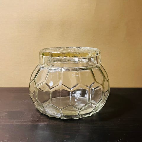 Glas, Honningkrukke i ufarvet glas med plastlåg