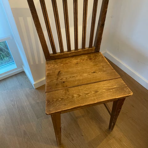 Gammel smuk svensk stol. Trænger til ombetrækning. Med fjedere i sædet.