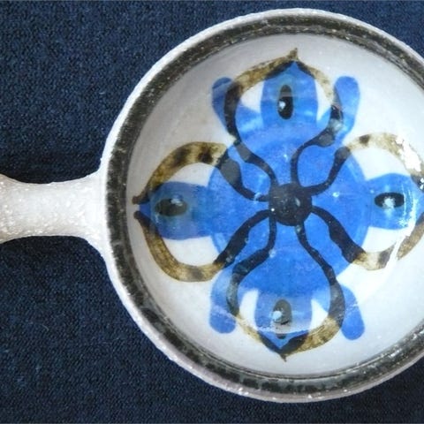 Ældre fin Søholm stentøj/keramik skål med hank, kan evt. bruges til fyrfadslys. Måler 14 cm i diameter, stemplet i bunden