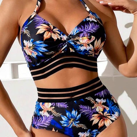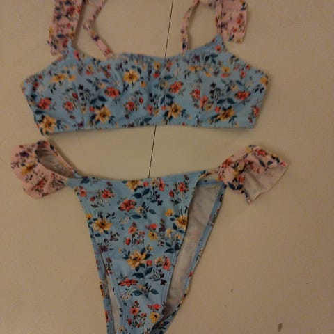 SHEIN Swim Tropisk Print Bikinisæt Til Sommerstrand Med Kimono i str. S sælges for kun 100 kr. Den er helt nyt.