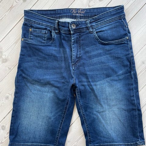Mørkeblå shorts med lyseblå palmer fra Pre End. Til herrer. Opsmøg ved lårene. Bæltestropper. Lommer bagpå og foran. Str. W32. Små i størrelsen. Aldrig brugt og fejler intet.