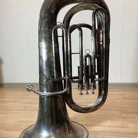 FLOT GAMMEL TUBA I MESSING/KOBBER