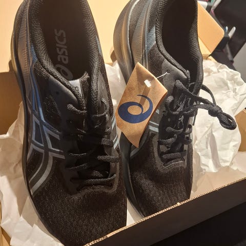 Lækre løbesko fra Asics, klap på venstre sko repareret. Ellers som nye