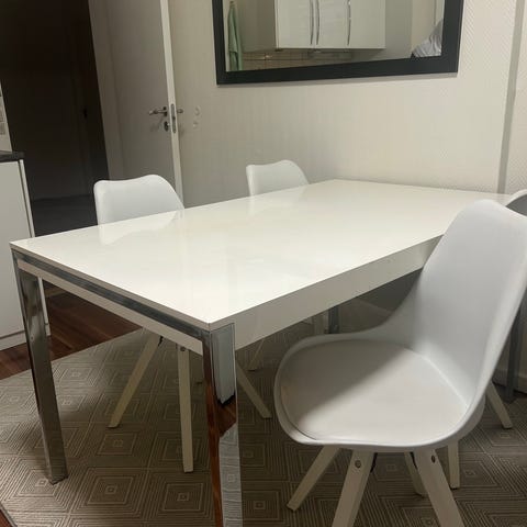 Bordet er brug med synlige brugsspor og stolene er fra IKEA og er helt nye.