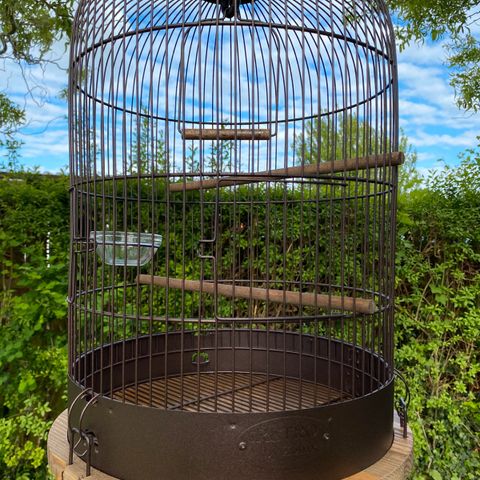 Helt nyt fuglebur aldrig brugt da jeg ikk fik fugl alligevel. Super smukt og rustikt kan også bruges udwndørs til blomster ell lign da det er rustfrit. Så mål på billedet. Har dette som er det største og et lidt mindre på en anden annonce