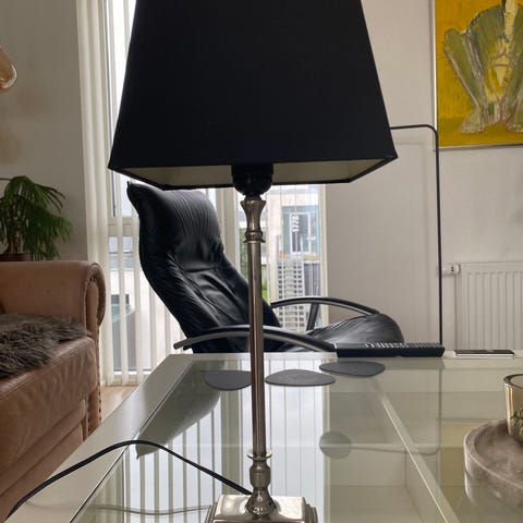 Blå Bordlampe fra Bahne med sort lampeskærm