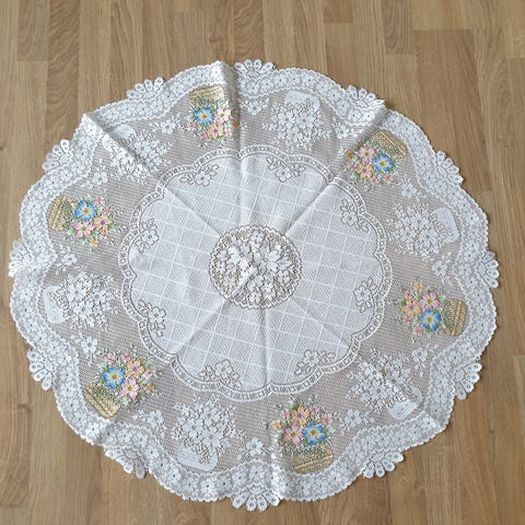 Dug / tæppe, Hør dug/ vægtæppe med julemotiv - nisser og hjerter. I syet i kanterne. 66 x 79 cm.