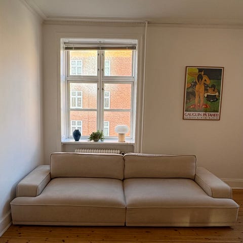 Smuk Elinor sofa i beige - custommade betræk. Den er I virkelig god stand. Hvis køber kan vente med at hente den om en måneds tid, ville det være perfekt!