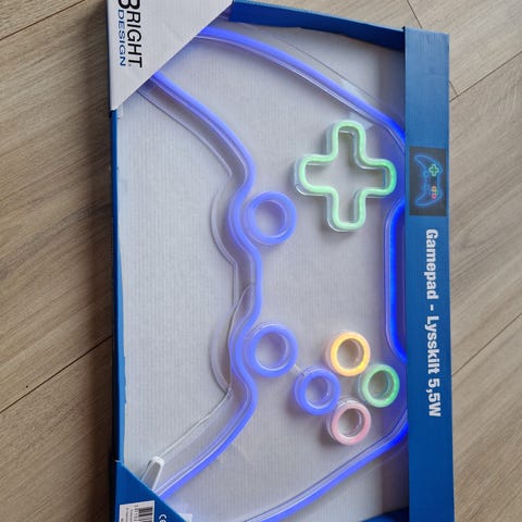 Uåbnet LED lysskilt formet som en gamepad.