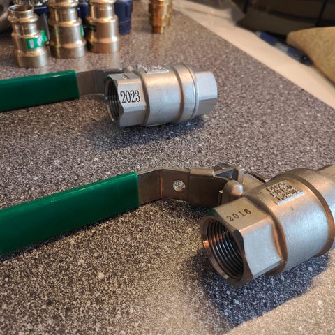 Kobber fittings, kuglehaner i flere størrelser