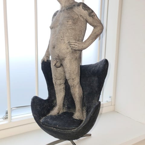Keramisk skulptur, Lars Calmar, motiv: Mand, Sjælden og helt unik guldbelagt skulptur. Højde er 48 cm.