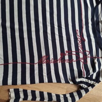 Lækker bluse med fint mønster over barmen. Blusen er sort/hvid. Gennemsigtig med dobbelt lag stof i det sorte/guld mønster over barmen. Den er blød. Den kan strækkes.