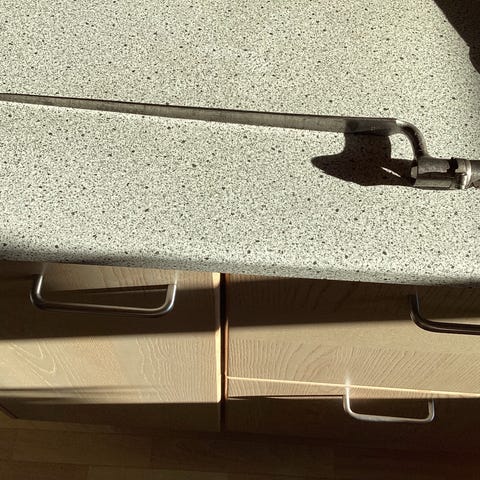JEG HAR IKKE HAFT LEJLIGHED TIL AT UNDERSØGE LAND OG TIL HVILKEN RIFFEL DEN PASSER TIL - MEN EN UDSÆDVANLIG BAJONET MED DEN MEGET LILLE DØLLE - BAJONETTEN KAN EFTER MIN MENING KUNNE PASSE TIL ET KADETGEVÆR - EN KADET - ALTSÅ EN OFFICERSELEV, SOM BLEV INDSKREVE I HÆREN SOM GANSKE, GANSKE UNG DRENG, SOM BLEV BEVÆBNET MED TILSVARENDE SMÅ VÅBEN,