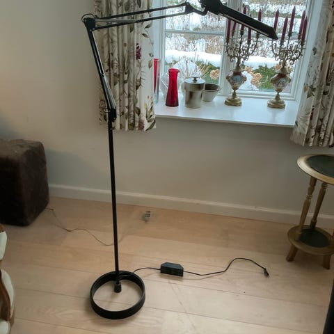 Standerlampe, Luxor, 1 stk tilbage Luxor standerlamper model Free Floor ( 7352-455 ) beregnet til kontor eller hvor ellers man sidder og arbejder, da den afgiver et meget behageligt arbejdslys, up and down lys, der er tænd og sluk knap på stang. Der er nogle brugsspor. Lampe er ikke ny og sælges derfor som brugt, derfor kan der forekomme ridser, slid og skrammer. Prisen er kun 1.500kr.