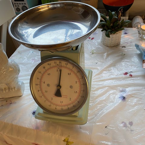 og hæld indhold i, du kan herefter aflæse vægten.