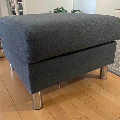 Ubrugt puf i ny stand. Sorte stålben og gråt vaskbart betræk.