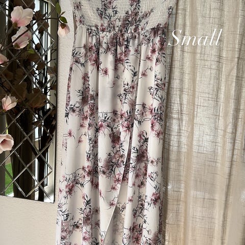 Flot hvid kjole med blonde mønster foran. Str S, men er lille i det. Aldrig brugt- stadig med mærke på. Fra røgfrit hjem.